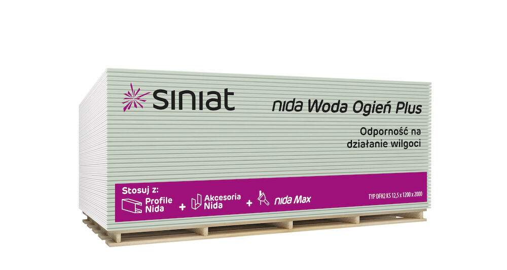 GIPSZKARTON TŰZGÁTLÓ-IMPREGNÁLT 12,5 X 1200 X 2000 MM SINIAT NIDA WODA OGIEŃ (DFH2) 2,4 M2